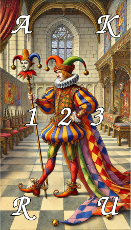 Der Hofnarr ist eine der beiden Spezialkarte und er zeichnet sich dadurch aus, dass er von jedem Stand und von jeder Charakter-Wertigkeit ist (1 bis 3). Das hat zur Folge, dass man ihn bei jeder Frage nach einem Stand und nach einer Charakter-Wertigkeit herzeigen kann. Damit kann man andere Karten decken und generell erzwingen, dass man nur noch Fragen des ersten Typs, also nach einem Charakter und einem Ort erhält. Letzteres bietet einen Vorteil, da gerade am Anfang des Spieles diese Fragen bei Verneinung gleich viel den anderen Spielern helfen wie dem Fragenden selbst. Spieler werden es daher bevorzugen, nach dem Stand oder der Wertigkeit zu fragen. Dies hat wiederum zur Folge, dass der Spieler mit dem Hofnarren, eher gemieden und andere Spieler häufiger befragt werden - und allgemein gilt je weniger man seine eigenen Karten herzeigen muss, desto größer ist der Informationsvorteil.